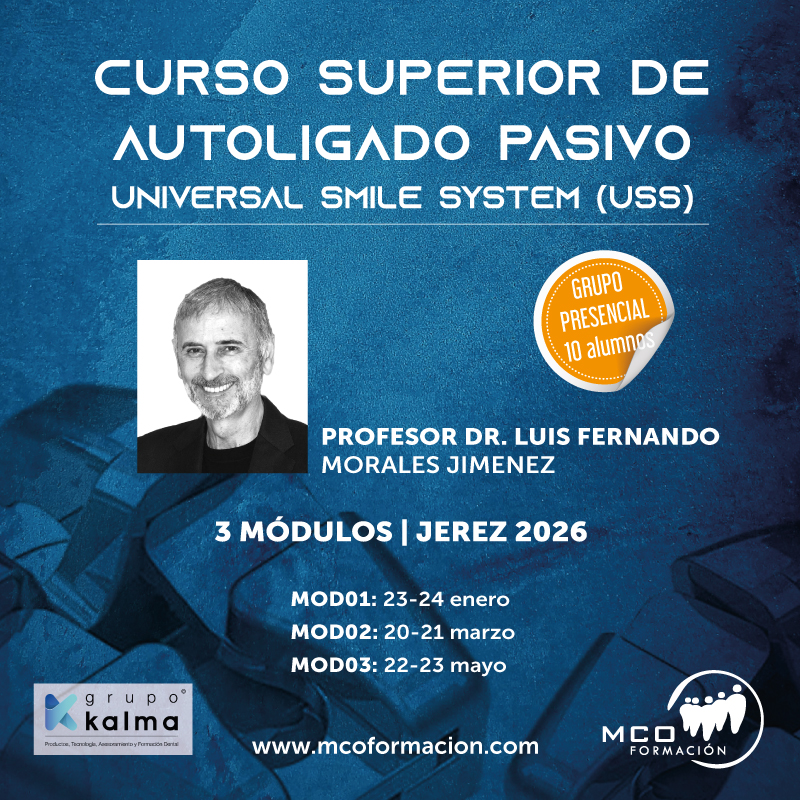 El Curso Superior de Autoligado Pasivo USS es una formación avanzada dirigida a ortodoncistas, con enfoque clínico y práctico en diferentes tipos de maloclusiones, gestión de biomecánica, fricción, torque y finalización de tratamientos. Se imparte en tres módulos intensivos por un referente en ortodoncia en España, el Dr. Luis Fernando Morales Jiménez: